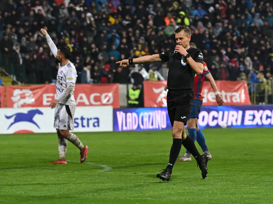 Arbitrul central George Catalin Roman dicteaza penalty in meciul dintre FC Botosani si FCSB, contand pentru Play out-ul Superligii Superbet, desfasurat pe Stadionul Municipal din Botosani, vineri 3 aprilie 2026. © FOTO:Razvan Pasarica/SPORT PICTURES