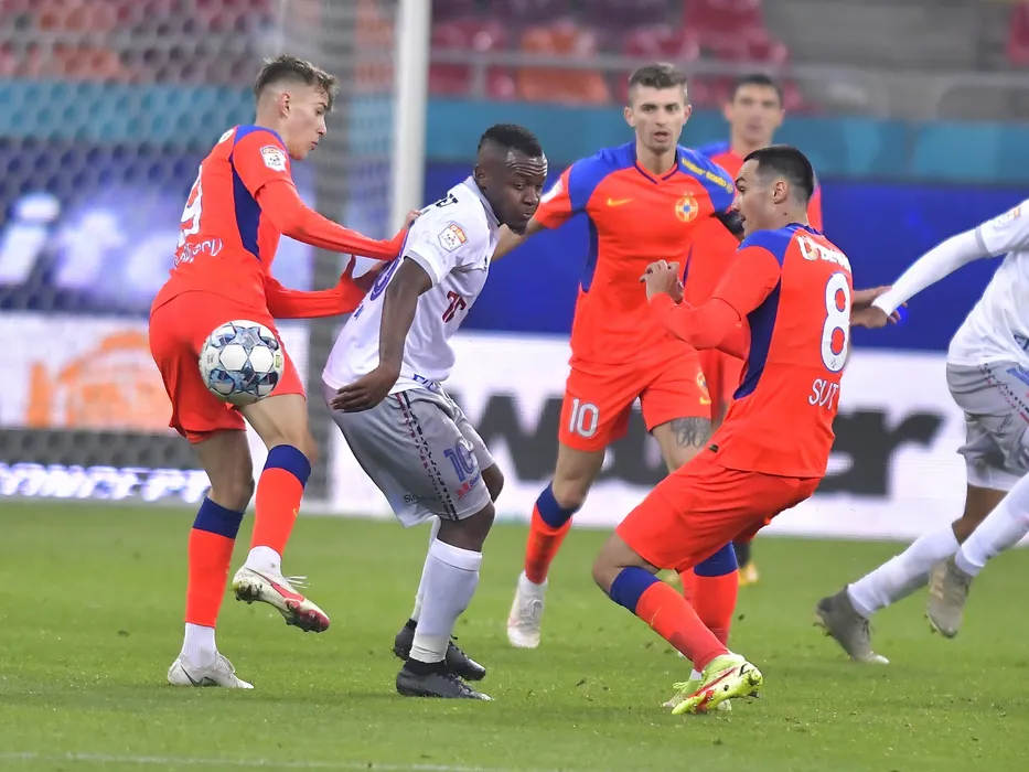Octavian George Popescu, Hervin Ongenda si Adrian Gheorghe Sut in meciul de fotbal dintre FCSB si FC Botosani, contand pentru Liga 1 Casa Pariurilor, desfasurat pe Arena Nationala din Bucuresti, duminica 21 noiembrie 2021. © FOTO:Razvan Pasarica/SPORT PICTURES