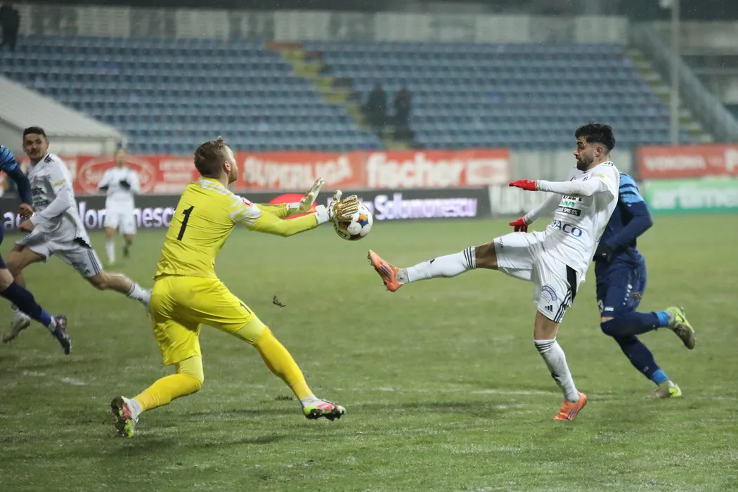 Arpad Sebastian Mailat si George Petrisor Gavrilas in meciul de fotbal dintre FC Botosani si FC Metaloglobus Bucuresti, contand pentru Superliga Superbet, desfasurat pe Stadionul Municipal din Botosani, duminica 8 februarie 2026. © FOTO:Ionut Tabultoc/SPORT PICTURES