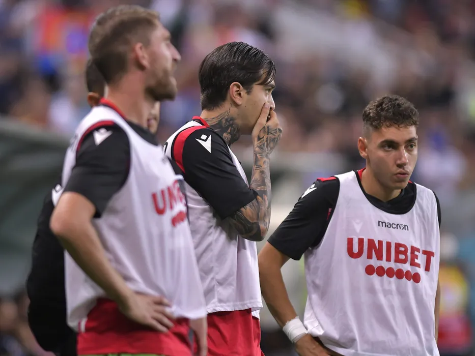Stefan Razvan Popa si Ahmed Andrei Mustafa Bani ingandurati la incalzire la meciul de fotbal dintre FCSB si Dinamo Bucuresti, contand pentru Liga 1 Casa Pariurilor, desfasurat pe Arena Nationala din Bucuresti, duminica 12 septembrie 2021. © FOTO:Razvan Pasarica/SPORT PICTURES