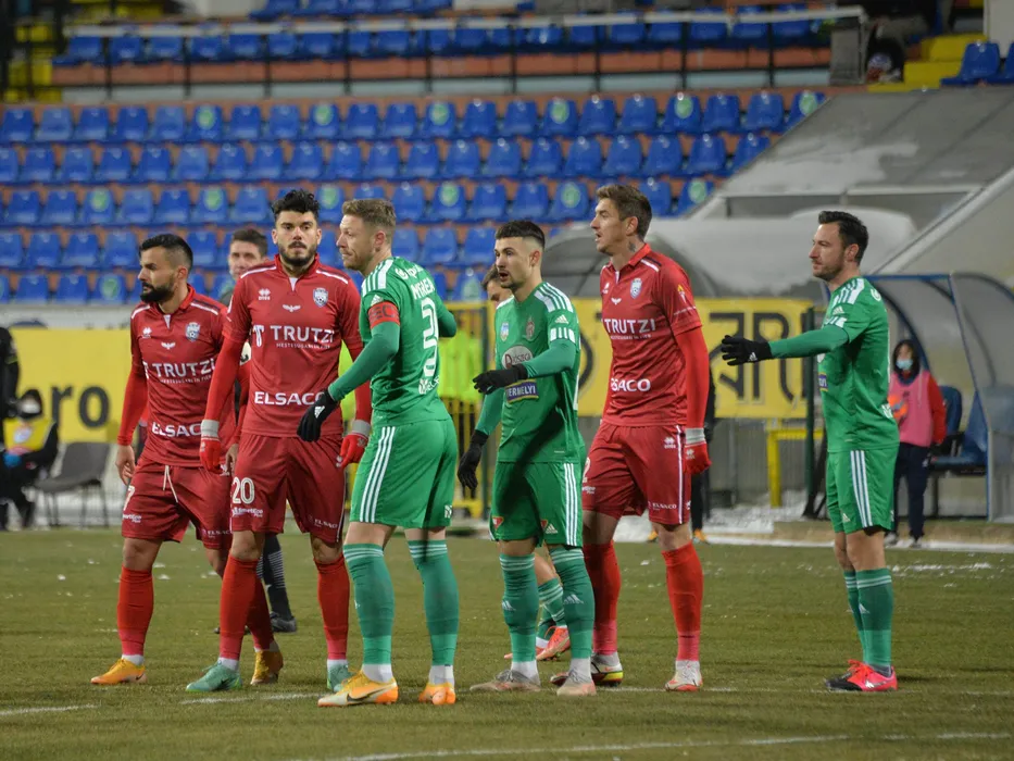 Mihai Alexandru Roman si Bogdan Alexandru Mitrea in meciul de fotbal dintre FC Botosani si Sepsi Sfantu Gheorghe, contand pentru Liga 1 Casa Pariurilor, desfasurat pe Stadionul Municipal din Botosani, luni 24 ianuarie 2022. © FOTO:Ionut Tabultoc/SPORT PICTURES