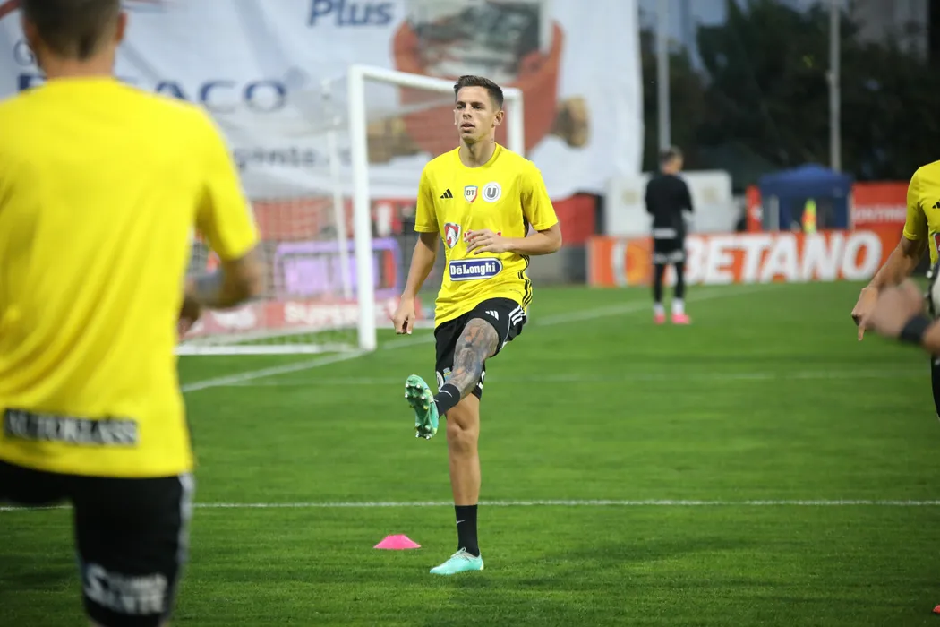 George Alexandru Cîmpanu la încălzire înainte de inceperea meciului de fotbal dintre FC BOTOȘANI și FC UNIVERSITATEA CLUJ, contând pentru SUPERLIGA SUPERBET, desfășurat pe Stadionul Municipal din Botoșani, luni 30 octombrie 2023. © FOTO: Ionuț TABULTOC/SPORT PICTURES