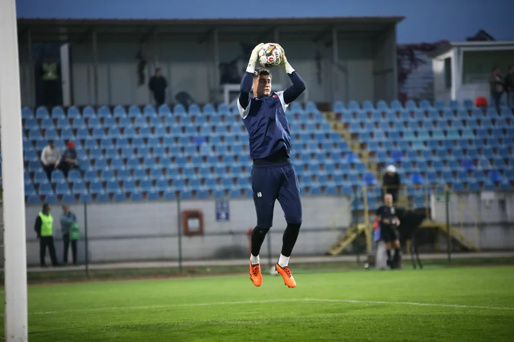 Razvan Cristian Ducan la încălzire înainte de inceperea meciului de fotbal dintre FC BOTOȘANI și FC UNIVERSITATEA CLUJ, contând pentru SUPERLIGA SUPERBET, desfășurat pe Stadionul Municipal din Botoșani, luni 30 octombrie 2023. © FOTO: Ionuț TABULTOC/SPORT PICTURES