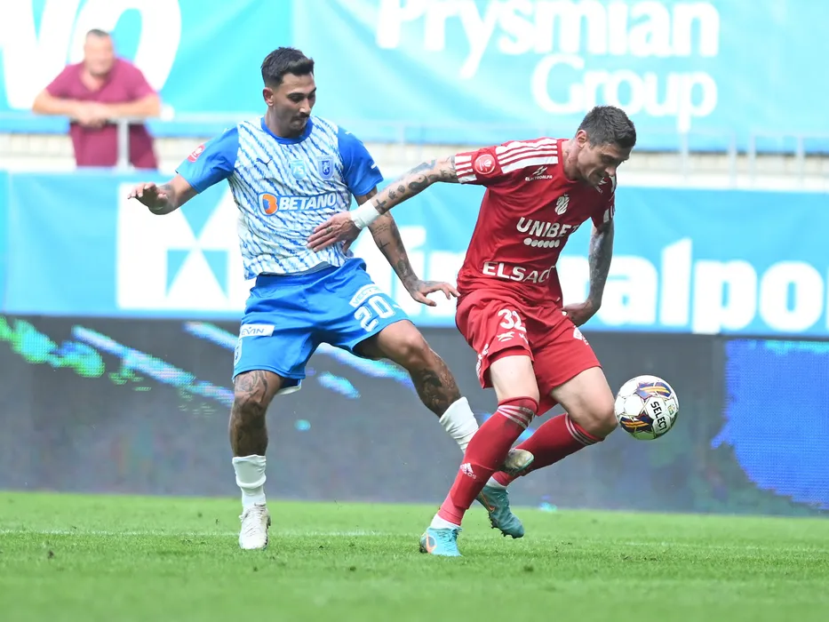 Jovan Markovic si Alin Ioan Seroni in meciul de fotbal dintre Universitatea Craiova si FC Botosani, contand pentru Superliga Superbet, desfasurat pe Stadionul Ion Oblemenco din Craiova, duminica 1 octombrie 2023. © FOTO:Razvan Pasarica/SPORT PICTURES