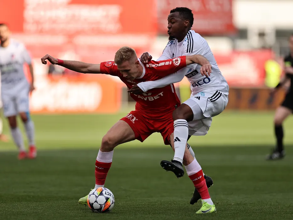 Cristian Petrisor Mihai si Hervin Ongenda in meciul de fotbal dintre UTA Arad si FC Botosani, contand pentru Superliga Superbet - Play-Out, desfasurat pe Arena Francisc Neuman din Arad, sambata 5 aprilie 2025. © FOTO: Sebastian Tataru/SPORT PICTURES