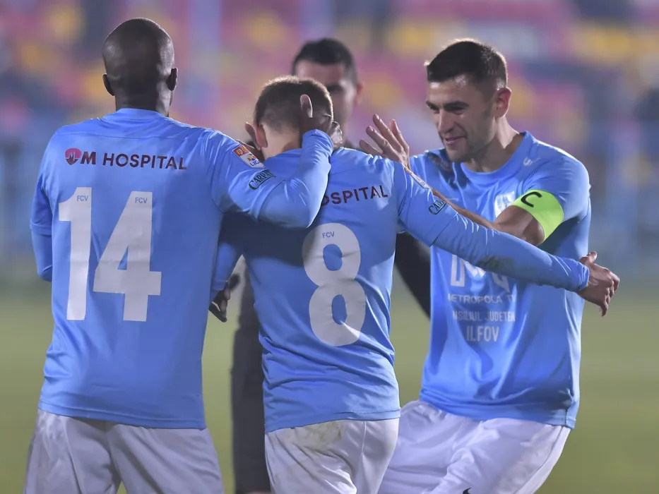Bucurie a fotbalistilor voluntareni Marcelo Andre Da Veiga Lopes si Igor Armas dupa un gol marcat de catre Ion Gheorghe in meciul de fotbal dintre FC Voluntari si Dinamo Bucuresti, contand pentru Liga 1 Casa Pariurilor, desfasurat pe Stadionul Anghel Iordanescu din Voluntari, luni 22 noiembrie 2021. © FOTO:Razvan Pasarica/SPORT PICTURES