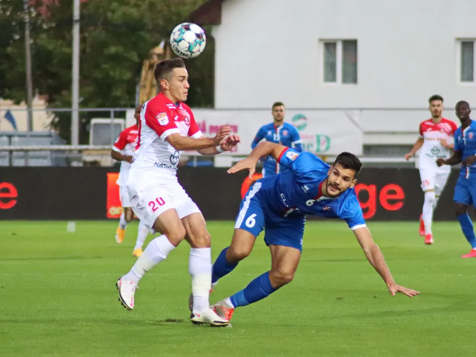 Andrei Sintean si Andrei Chindris in meciul de fotbal dintre AFC Hermannstadt-FC Botosani din etapa a V-a a Ligii 1, disputat pe stadionul Municipal din Sibiu, luni, 28 septembrie 2020..© FOTO:Valentin Macrea / Sport Picture