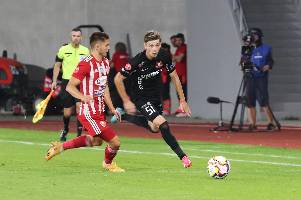Oroian urmarit de Ion Gheorghe in meciul de fotbal dintre AFS HERMANNSTADT SIBIU si SEPSI OSK SFANTU GHEORGHE contand pentru CUPA ROMANIEI BETANO, desfasurat pe Stadionul Municipal din Sibiu, miercuri 27 septembrie 2023. © FOTO: Valentin MACREA/SPORT PICTURES