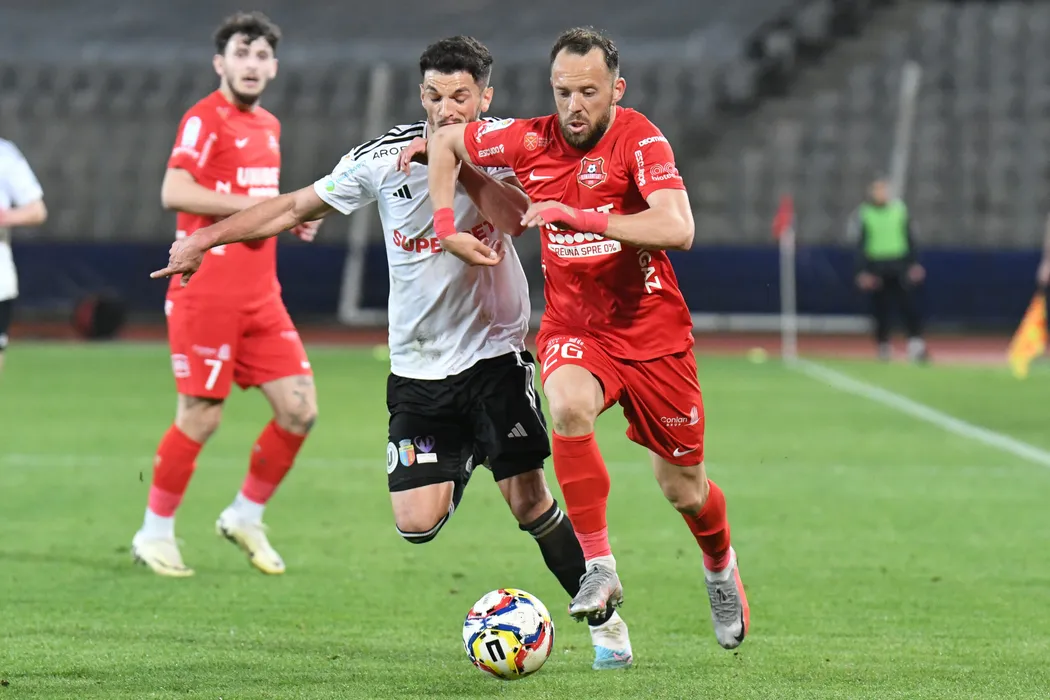Cristian Daniel Neguț și Gabriel Dorinel Oancea în meciul de fotbal dintre FC Universitatea Cluj și AFC Hermannstadt, contând pentru Cupa României Betano - Sferturi de Finală, desfășurat pe Stadionul CLUJ ARENA din Cluj-Napoca, miercuri 3 aprilie 2024. © FOTO: Flaviu BUBOI/SPORT PICTURES