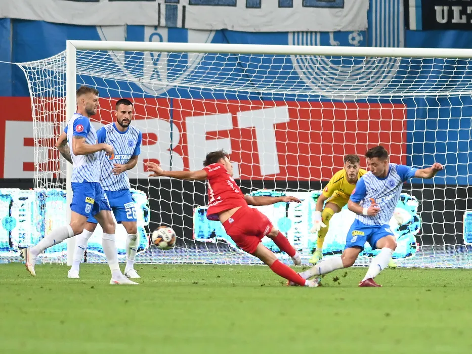 Alexandru Cretu, Gjoko Zajkov, Alexandru Mateiu si Iulian Laurentiu Popescu in meciul de fotbal dintre Universitatea Craiova si FC Hermannstadt, contand pentru Superliga Superbet, desfasurat pe Stadionul Ion Oblemenco din Craiova, vineri 4 august 2023. © FOTO:Razvan Pasarica/SPORT PICTURES