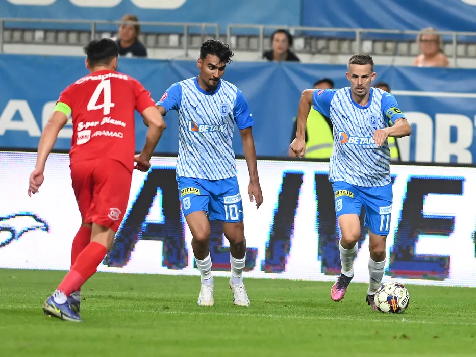 Stefan Baiaram si Nicusor Silviu Bancu in meciul de fotbal dintre Universitatea Craiova si FC Hermannstadt, contand pentru Superliga Superbet, desfasurat pe Stadionul Ion Oblemenco din Craiova, vineri 4 august 2023. © FOTO:Razvan Pasarica/SPORT PICTURES