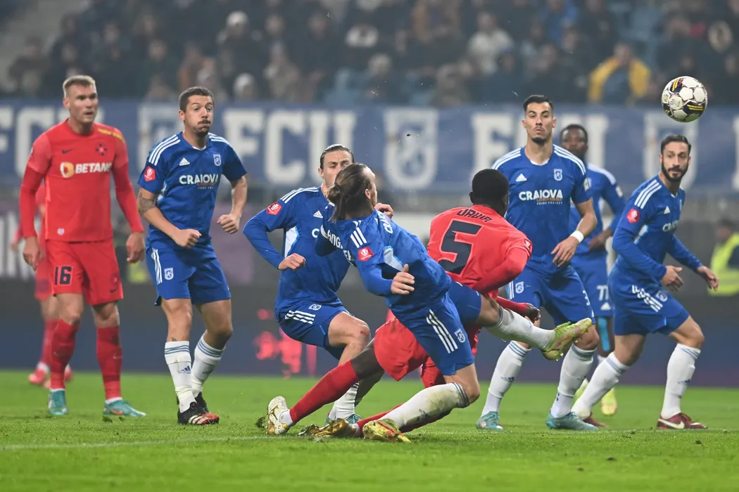 Joyskim Aurelien Dawa Tchakonte marcheaza un gol de langa Joonas Tamm, Alexandru Vlad Achim, Lorenzo Paramatti si Duarte Andre Lourenco in meciul de fotbal dintre FC U Craiova si FCSB, contand pentru Superliga Superbet, desfasurat pe Stadionul Ion Oblemenco din Craiova, duminica 13 noiembrie 2022. © FOTO:Razvan Pasarica/SPORT PICTURES