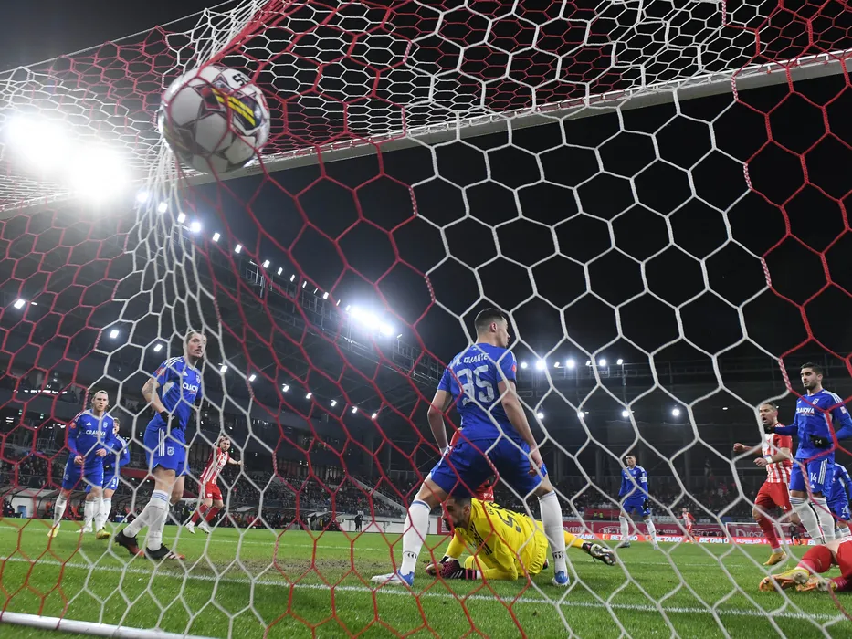 Mihai Alexandru Balasa marcheaza un gol sub privirile lui Vlad Achim si Ion Cristian Gurau in meciul de fotbal dintre Sepsi OSK Sfantu Gheorghe si FC U Craiova, contand pentru Superliga Superbet, desfasurat pe Sepsi Arena din Sfantu Gheorghe, vineri 16 martie 2023. © FOTO:Razvan Pasarica/SPORT PICTURES
