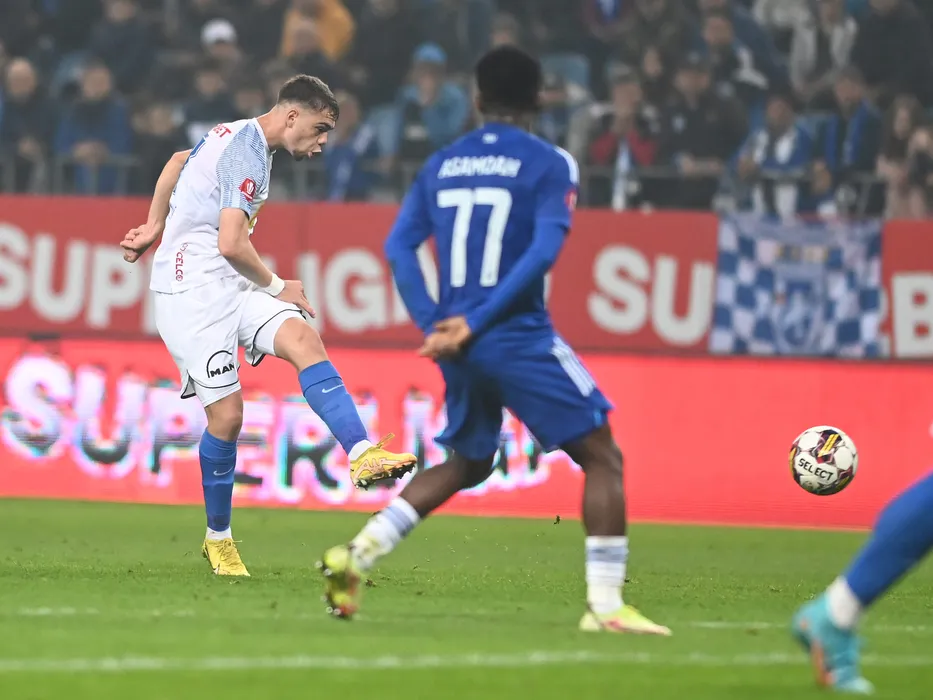 Sebastian Andrei Borza marcheaza un gol in meciul de fotbal dintre FC U Craiova si Farul Constanta, contand pentru Superliga Superbet, desfasurat pe Stadionul Ion Oblemenco din Craiova, vineri 28 octombrie 2022. © FOTO:Razvan Pasarica/SPORT PICTURES