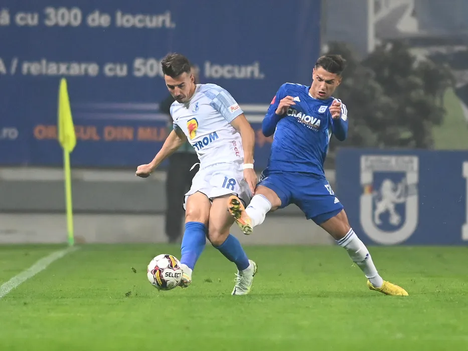 Andrei Viorel Artean si George Ganea in meciul de fotbal dintre FC U Craiova si Farul Constanta, contand pentru Superliga Superbet, desfasurat pe Stadionul Ion Oblemenco din Craiova, vineri 28 octombrie 2022. © FOTO:Razvan Pasarica/SPORT PICTURES