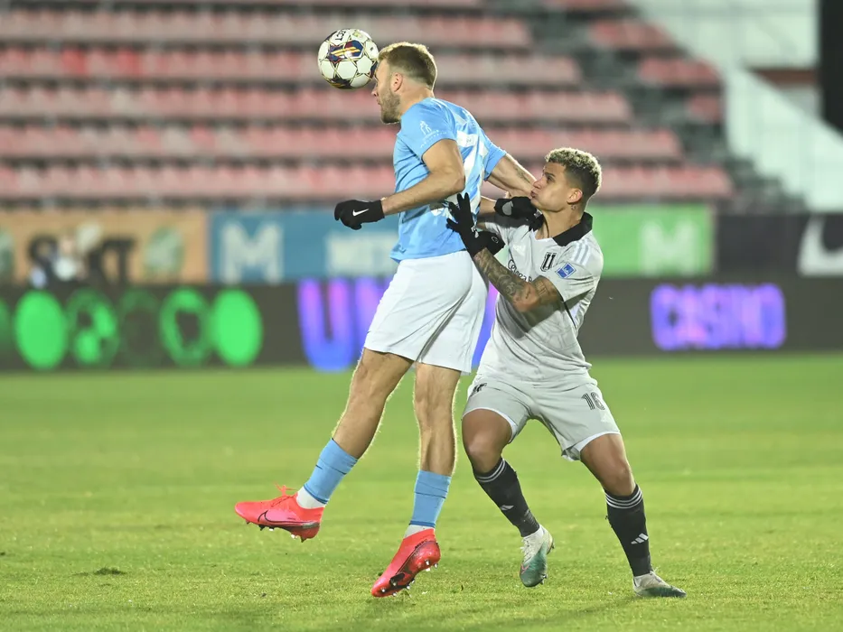 Adam Nemec si Raimundo Matheus Mascarenhas Dos Santos in meciul de fotbal dintre FC Voluntari si FC U Craiova, din cadrul Superligii Superbet, desfasurat pe Stadionul Anghel Iordanescu din Voluntari, vineri 15 decembrie 2023. © FOTO:Razvan Pasarica/SPORT PICTURES