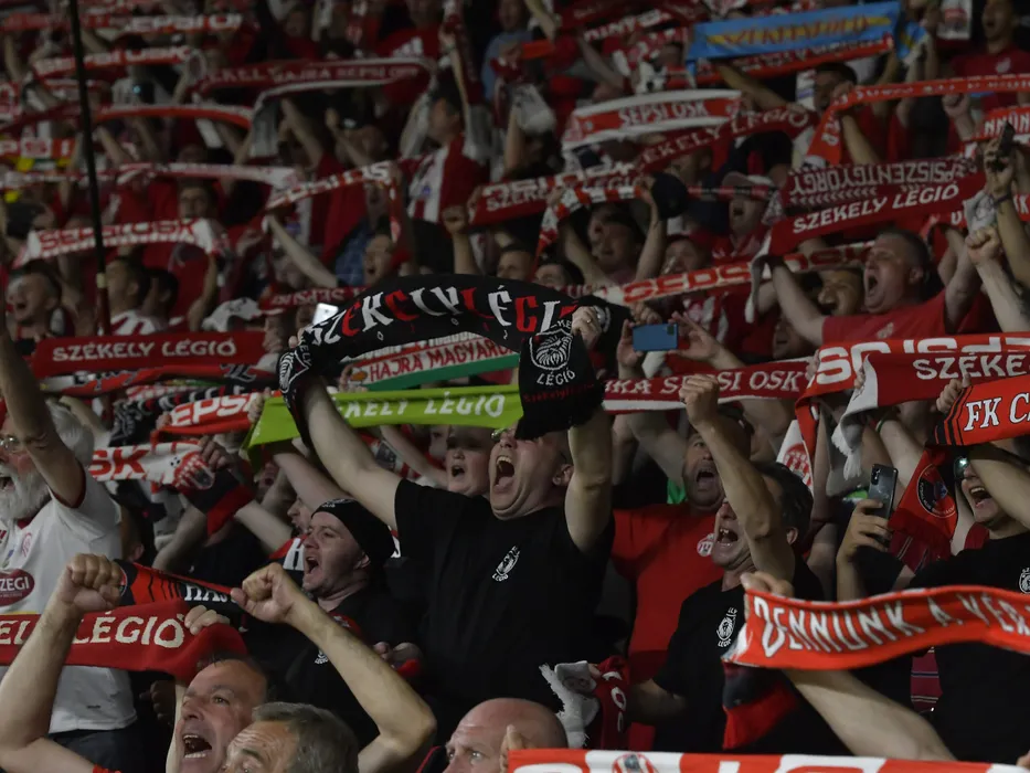 Suporterii de la Sepsi isi incurajeaza favoritii la meciul de fotbal dintre Sepsi OSK Sfantu Gheorghe si FC Voluntari, finala Cupei Romaniei, desfasurat pe Stadionul Rapid din Bucuresti, joi 19 mai 2022. © FOTO:Razvan Pasarica/SPORT PICTURES