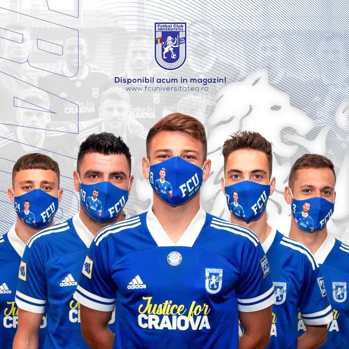 Premieră în România. FC Universitatea Craiova a lansat măști de protecție personalizate pentru suporterii alb-albaștrilor, cu chipul jucătorilor!