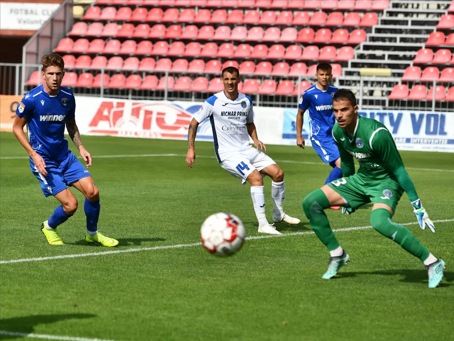 Marko Simonovski, Gabriel Eugen Matei,Miguel Jose Oliveira Silva Santos si Ion Gheorghe in meciul de fotbal dintre FC Voluntari si Academica Clinceni, contand pentru play-out-ul Ligii 1 Casa Pariurilor, disputat fara spectatori pe Stadionul Anghel Iordanescu din Voluntari, sambata 13 iunie 2020.Partida de fotbal este prima oficiala ce se desfasoara pe teritoriul Romaniei dupa terminarea starii de urgenta instituita in urma pandemiei coronavirus.© FOTO:Razvan Pasarica/SPORT PICTURES