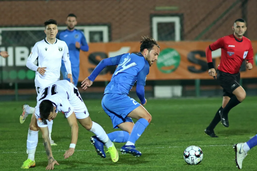 Meciul de fotbal dintre echipele FC Voluntari si Academica Clinceni (echipament albastru) din etapa a XII-a a Ligii 1, disputat pe stadionul Anghel Iordanescu din Voluntari, vineri, 4 decembrie 2020. GEORGE FILIP / MEDIAFAX FOTO