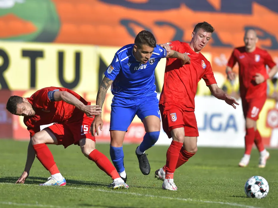 Cornel Dinu, Jefte Sanchez Betancor si Vadim Rata in meciul de fotbal dintre FC Voluntari si Chindia Targoviste, contand pentru Play-off-ul Ligii 1 Casa Pariurilor, desfasurat fara spectatori pe Stadionul Anghel Iordanescu din Voluntari, luni 10 mai 2021. © FOTO:Razvan Pasarica/SPORT PICTURES