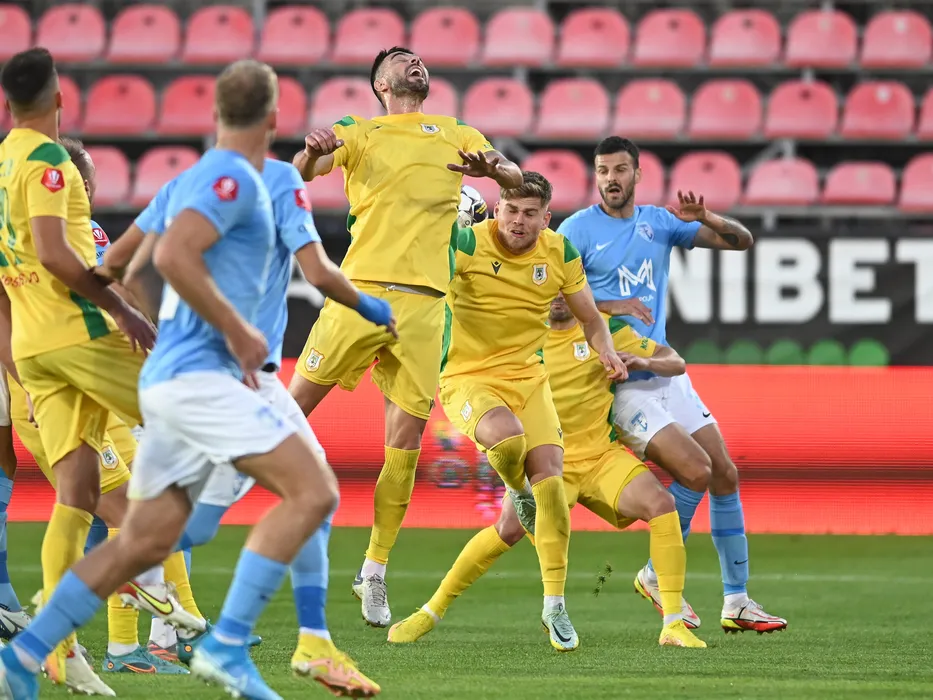 Ionut Balaur, Vlad Marian Pop si Patricio Martin Matricardi in meciul de fotbal dintre FC Voluntari si CS Mioveni, contand pentru SuperLiga Superbet, desfasurat pe Stadionul Anghel Iordanescu din Voluntari, vineri 7 octombrie 2022. © FOTO:Razvan Pasarica/SPORT PICTURES