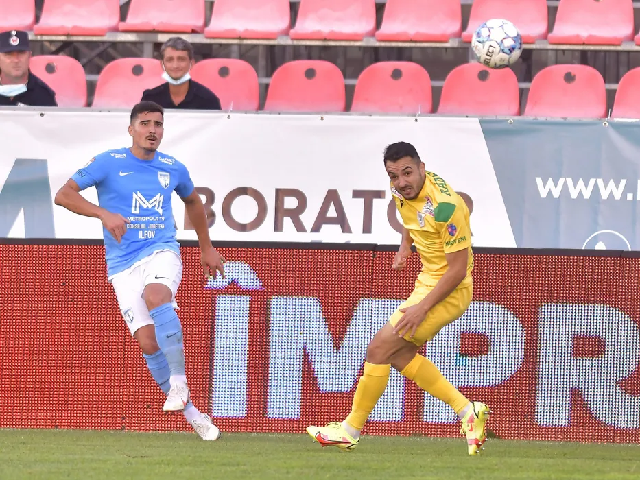 Marius Ionut Briceag si Laurentiu Ionut Radescu in meciul de fotbal dintre FC Voluntari si CS Mioveni, contand pentru Liga 1 Casa Pariurilor, desfasurat pe Stadionul Anghel Iordanescu din Voluntari, vineri 17 septembrie 2021. © FOTO:Razvan Pasarica/SPORT PICTURES