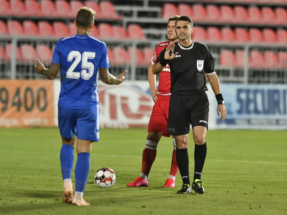 Arbitrul central Iulian Calin in meciul de fotbal dintre FC Voluntari si Dinamo Bucuresti, contand pentru play-out-ul Ligii 1 Casa Pariurilor, disputat fara spectatori pe Stadionul Anghel Iordanescu din Voluntari, duminica 2 august 2020.© FOTO:Razvan Pasarica/SPORT PICTURES
