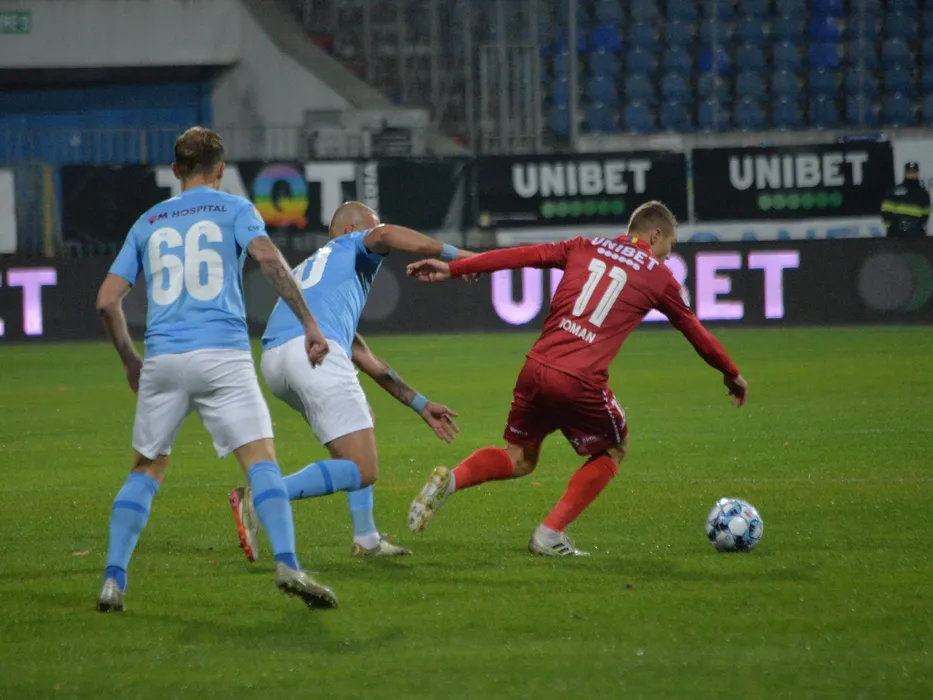 Mihai Roman si Gabriel Sebastian Tamas in meciul de fotbal dintre FC Botosani si FC Voluntari, contand pentru Liga 1 Casa Pariurilor, desfasurat pe Stadionul Municipal din Botosani, duminica 28 noiembrie 2021. © FOTO:Ionut Tabultoc/SPORT PICTURES