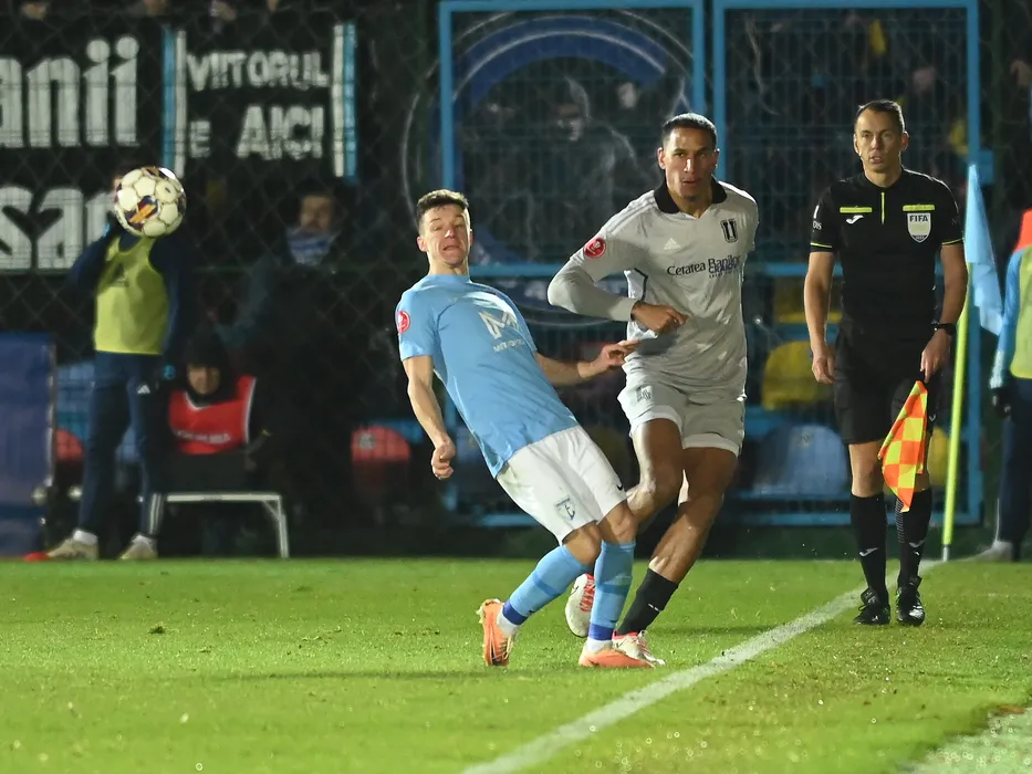 Arbitrul asistent Radu Adrian Ghinguleac alaturi de Vadim Rata si Leo Sebastien Lacroix in meciul de fotbal dintre FC Voluntari si FC U Craiova, din cadrul Superligii Superbet, desfasurat pe Stadionul Anghel Iordanescu din Voluntari, vineri 15 decembrie 2023. © FOTO:Razvan Pasarica/SPORT PICTURES
