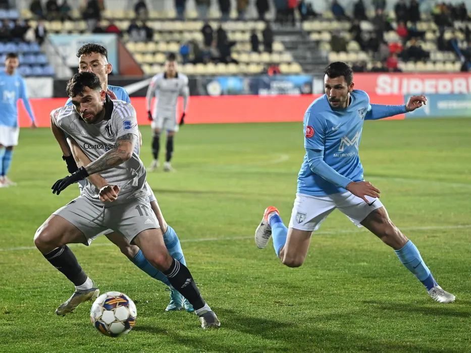Aurelian Ionut Chitu, Nicolae Carnat si Cristian Ignacio Paz in meciul de fotbal dintre FC Voluntari si FC U Craiova, din cadrul Superligii Superbet, desfasurat pe Stadionul Anghel Iordanescu din Voluntari, vineri 15 decembrie 2023. © FOTO:Razvan Pasarica/SPORT PICTURES