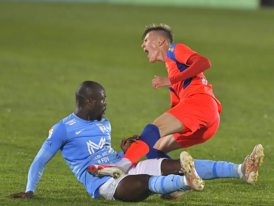 Ulrich Sidoine Meleke si Octavian George Popescu in meciul de fotbal dintre FC Voluntari si FCSB, contand pentru Liga 1 Casa Pariurilor, desfasurat pe Stadionul Anghel Iordanescu din Voluntari, duminica 7 noiembrie 2021. © FOTO:Razvan Pasarica/SPORT PICTURES