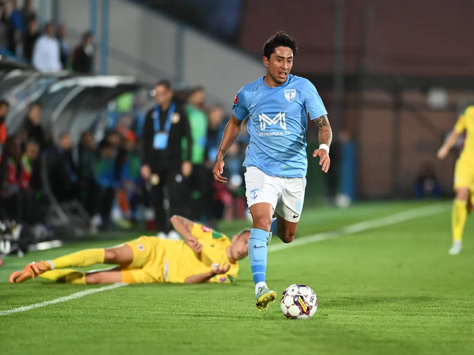Omar Nicolas Govea Garcia si Mihai Daniel Lixandru in meciul de fotbal dintre FC Voluntari si CS Mioveni, contand pentru SuperLiga Superbet, desfasurat pe Stadionul Anghel Iordanescu din Voluntari, vineri 7 octombrie 2022. © FOTO:Razvan Pasarica/SPORT PICTURES