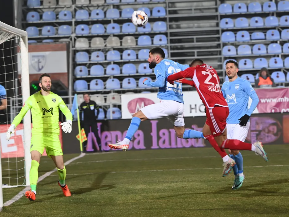 Collado Jesus Fernandez, Radu Ștefaniță Boboc si Ricardo Jose Veiga Varzim Miranda în meciul de fotbal dintre FC Voluntari si Otelul Galati, contând pentru Superliga Superbet, desfășurat pe Stadionul Anghel Iordanescu din Voluntari, luni 22 ianuarie 2024. © FOTO: Răzvan PĂSĂRICĂ/SPORT PICTURES
