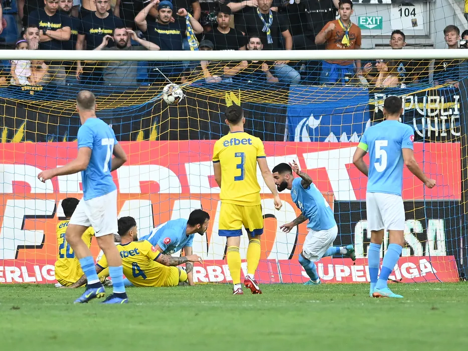 Radu Stefanita Boboc marcheaza un gol in meciul de fotbal dintre Petrolul Ploiesti si FC Voluntari, din cadrul Superligii Superbet, desfasurat pe Stadionul Ilie Oana din Ploiesti, luni 31 iulie 2023. © FOTO:Razvan Pasarica/SPORT PICTURES