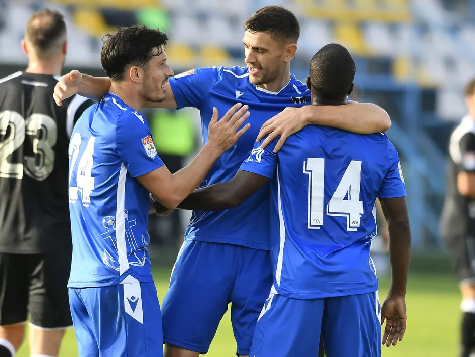 Bucurie a fotbalistilor voluntareni cu Ricardo Jose Veiga Varzim Miranda, Igor Armas si Marcelo Andre Da Veiga Lopes dupa un gol marcat in meciul de fotbal dintre FC Voluntari si CSM Politehnica Iasi, contand pentru Liga 1 Casa Pariurilor, desfasurat fara spectatori pe Stadionul Anghel Iordanescu din Voluntari, sambata 7 noiembrie 2020. © FOTO:Razvan Pasarica/SPORT PICTURES