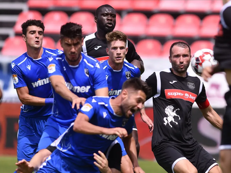 Alexandru Stefan Pascanu, Marko Simonovski, Michael Junior Omoh si Cosmin Vali Frasinescu in meciul de fotbal dintre FC Voluntari si CSM Politehnica Iasi, contand pentru play-out-ul Ligii 1 Casa Pariurilor, disputat fara spectatori pe Stadionul Anghel Iordanescu din Voluntari, duminica 21 iunie 2020.© FOTO:Razvan Pasarica/SPORT PICTURES