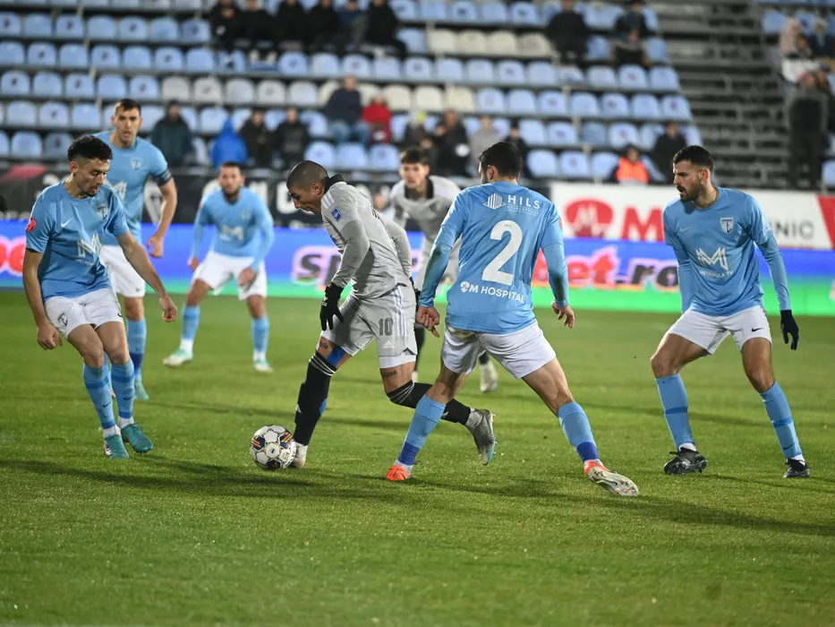 Nicolae Carnat, Juan Francisco Bauza, Cristian Ignacio Paz si Patricio Martin Matricardi in meciul de fotbal dintre FC Voluntari si FC U Craiova, din cadrul Superligii Superbet, desfasurat pe Stadionul Anghel Iordanescu din Voluntari, vineri 15 decembrie 2023. © FOTO:Razvan Pasarica/SPORT PICTURES