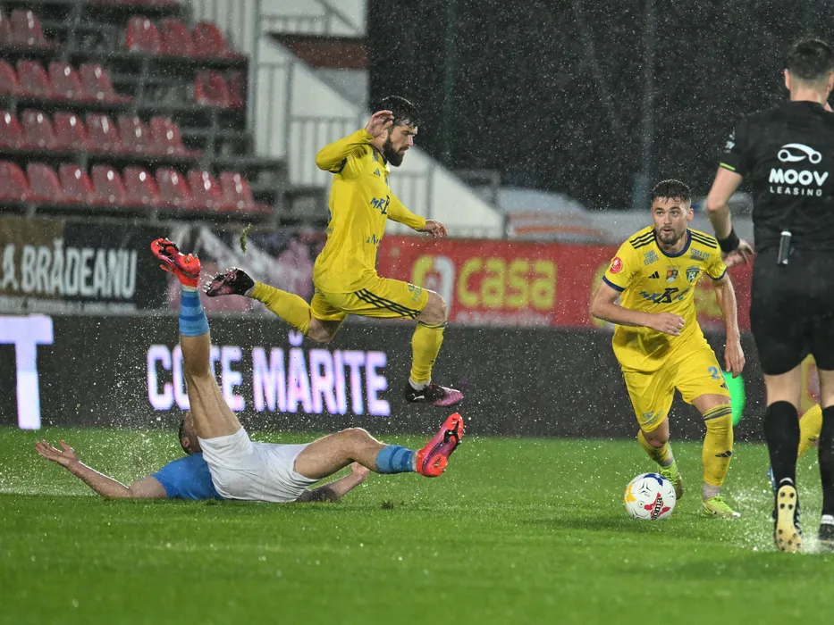 Rassambek Akhmatov si Ovidiu Ioan Perianu in meciul de fotbal dintre FC Voluntari si Unirea Slobozia, barajul tur de mentinere/promovare in Superliga Superbet, desfasurat pe Stadionul Anghel Iordanescu din Voluntari, luni 26 mai 2025. © FOTO:Razvan Pasarica/SPORT PICTURES