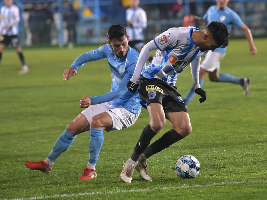 Ricardo Jose Veiga Varzim Miranda si Stefan Baiaram in meciul de fotbal dintre FC Voluntari si Universitatea Craiova, contand pentru Liga 1 Casa Pariurilor, desfasurat pe Stadionul Anghel Iordanescu din Voluntari, sambata 11 decembrie 2021. © FOTO:Razvan Pasarica/SPORT PICTURES