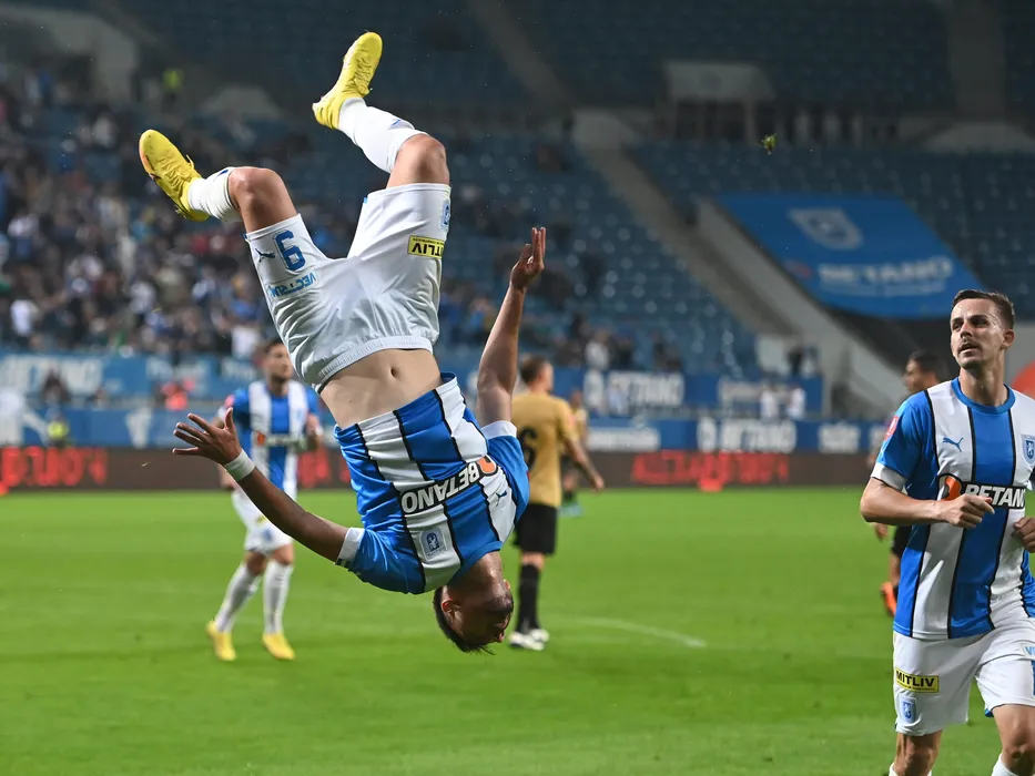 Andrei Virgil Ivan se bucura dupa un gol marcat alaturi de Nicusor Silviu Bancu in meciul de fotbal dintre Universitatea Craiova si FC Voluntari, contand pentru Superliga Superbet, desfasurat pe Stadionul Ion Oblemenco din Craiova, vineri 30 septembrie 2022. © FOTO:Razvan Pasarica/SPORT PICTURES