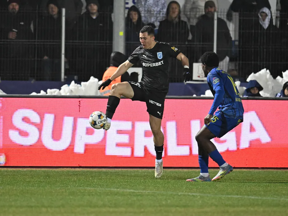 Carlos Andrei Mora Montoya si Marc Fred Tsoungui in meciul dintre Unirea Slobozia si Universitatea Craiova, contand pentru Superliga Superbet, desfasurat pe Stadionul 1 Mai din Slobozia, duminica 22 februarie 2026. © FOTO:Razvan Pasarica/SPORT PICTURES