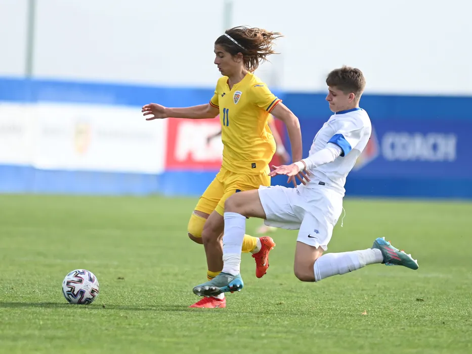 Alexandru Constantin Stoian si Jevgeni Tšernjakov in meciul de fotbal dintre Romania U17 si Estonia U17, contand pentru Turneul de calificare la Campionatul European 2024, desfasurat la Centrul National de Fotbal de la Buftea, marti 21 noiembrie 2023. © FOTO:Razvan Pasarica/SPORT PICTURES