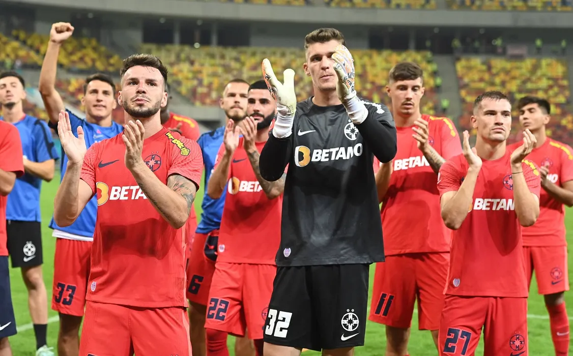 Fotbalistii stelisti Andrei Ioan Cordea si Stefan Tarnovanu saluta galeria dupa meciul de fotbal dintre FCSB si FC Hermannstadt, contand pentru Superliga Superbet, desfasurat pe Arena Nationala din Bucuresti, duminica 28 august 2022. Bucuresti *** Star footballers Andrei Ioan Cordea and Stefan Tarnovanu greet the gallery after the football match between FCSB and FC Hermannstadt, counting for the Superbet Superliga, held at the National Arena in Bucharest, Sunday, August 28, 2022 Bucharest Copyright: xRazvanxPasarica/SPORTxPICTURESx