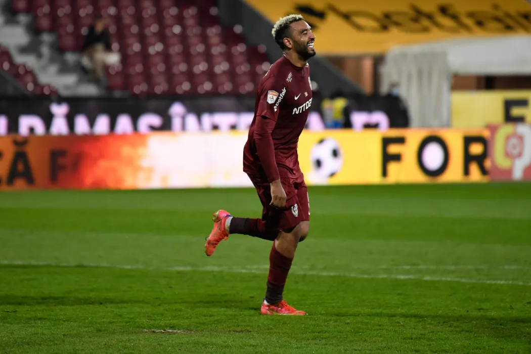 Billel Abdel Slem Omrani se bucura dupa un gol marcat in meciul de fotbal dintre CFR Cluj si Dinamo Bucuresti, contand pentru Liga 1 Casa Pariurilor, desfasurat fara spectatori pe Stadionul Dr. Constantin Radulescu din Cluj Napoca, luni 5 aprilie 2021. © FOTO:Flaviu Buboi/SPORT PICTURES