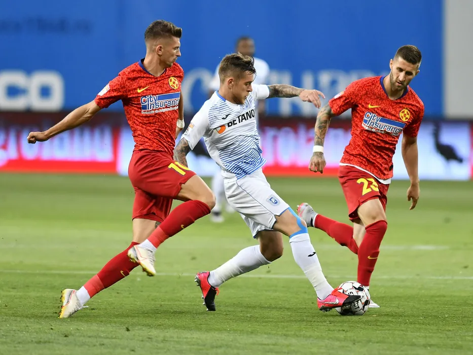 Florin Tanase, Alexandru Cicaldau si Ovidiu Popescu in meciul de fotbal dintre Universitatea Craiova si FCSB, contand pentru play-off-ul Ligii 1 Casa Pariurilor, disputat fara spectatori pe Stadionul Ion Oblemenco din Craiova, duminica 12 iulie 2020. © FOTO:Razvan Pasarica/SPORT PICTURES