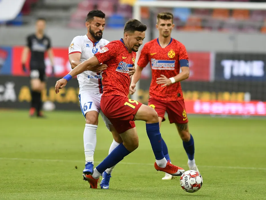 Enriko Papa si Adrian Petre in meciul de fotbal dintre FCSB si FC Botosani, contand pentru play-off-ul Ligii 1 Casa Pariurilor, disputat fara spectatori pe Arena Nationala din Bucuresti, sambata 4 iulie 2020. © FOTO:Razvan Pasarica/SPORT PICTURES