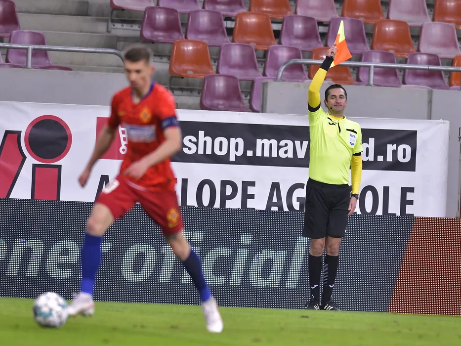 Arbitrul asistent Sebastian Eugen Gheorghe in meciul de fotbal dintre FCSB si CFR Cluj, contand pentru Liga 1 Casa Pariurilor, desfasurat fara spectatori pe Arena Nationala din Bucuresti, vineri 19 martie 2021. © FOTO:Razvan Pasarica/SPORT PICTURES