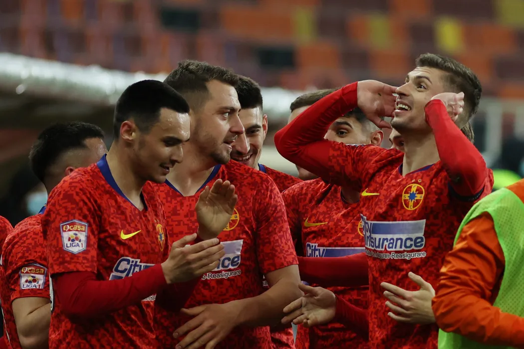 Echipele FCSB (echipament rosu) si CFR Cluj s-au intalnit intr-o partida disputata in etapa 28 din Liga 1 la fotbal, vineri 19 martie 2021, pe Arena Nationala din Bucuresti. GEORGE FLUSTER / MEDIAFAX FOTO