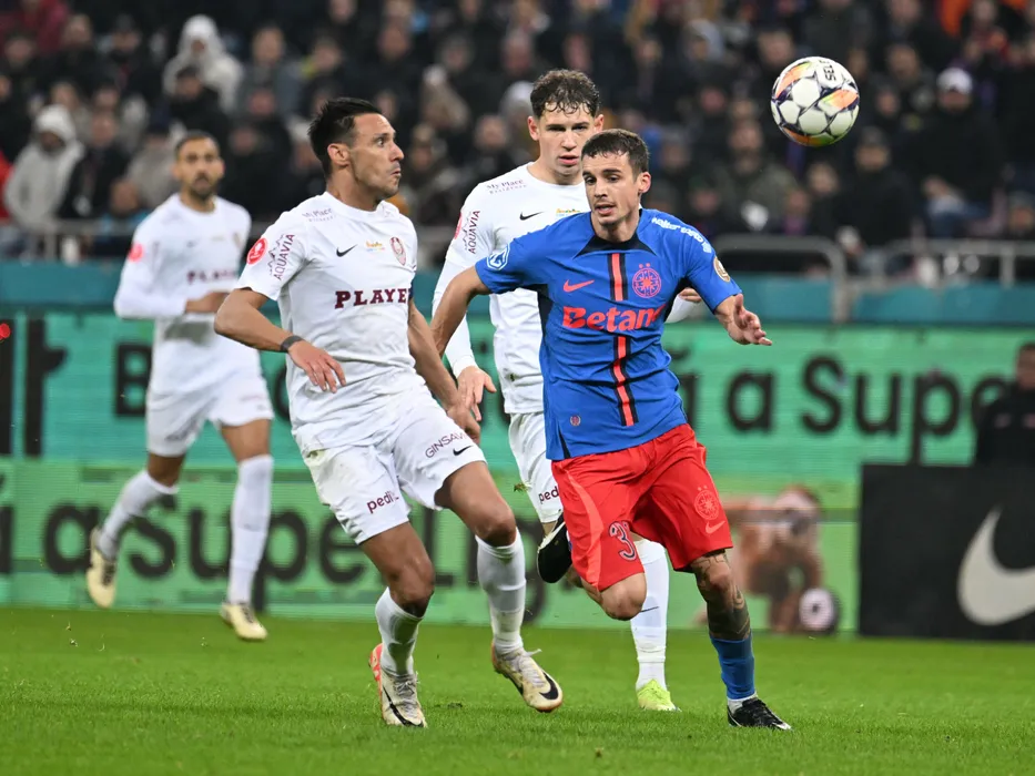 Mario Camora (Malico Paulino Mario Jorge), Matei Christian Ilie si Juri Cisotti in meciul de fotbal dintre FCSB si CFR Cluj, din cadrul Superligii Superbet, desfasurat pe Arena Nationala din Bucuresti, duminica 2 februarie 2025. © FOTO:Razvan Pasarica/SPORT PICTURES